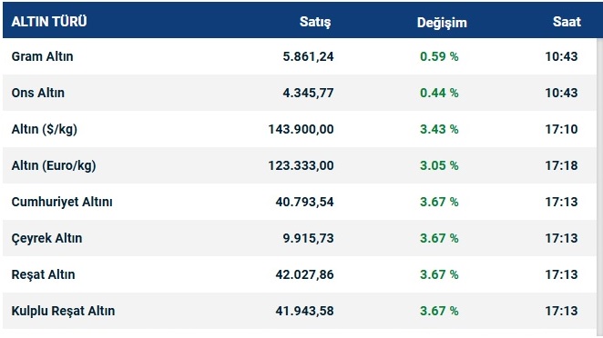 Ons altın güne 4336 dolardan başladı. Gün içinde en düşük 4279 dolar, en yüksek de 4379 dolar seviyesi görüldü. Şu sıralar 4359 dolardan işlem geçiyor.
